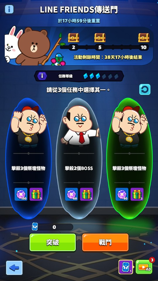 - 在「LINE FRIENDS傳送門」中亦可使用「突破券」,進度獎勵也與現有相同。