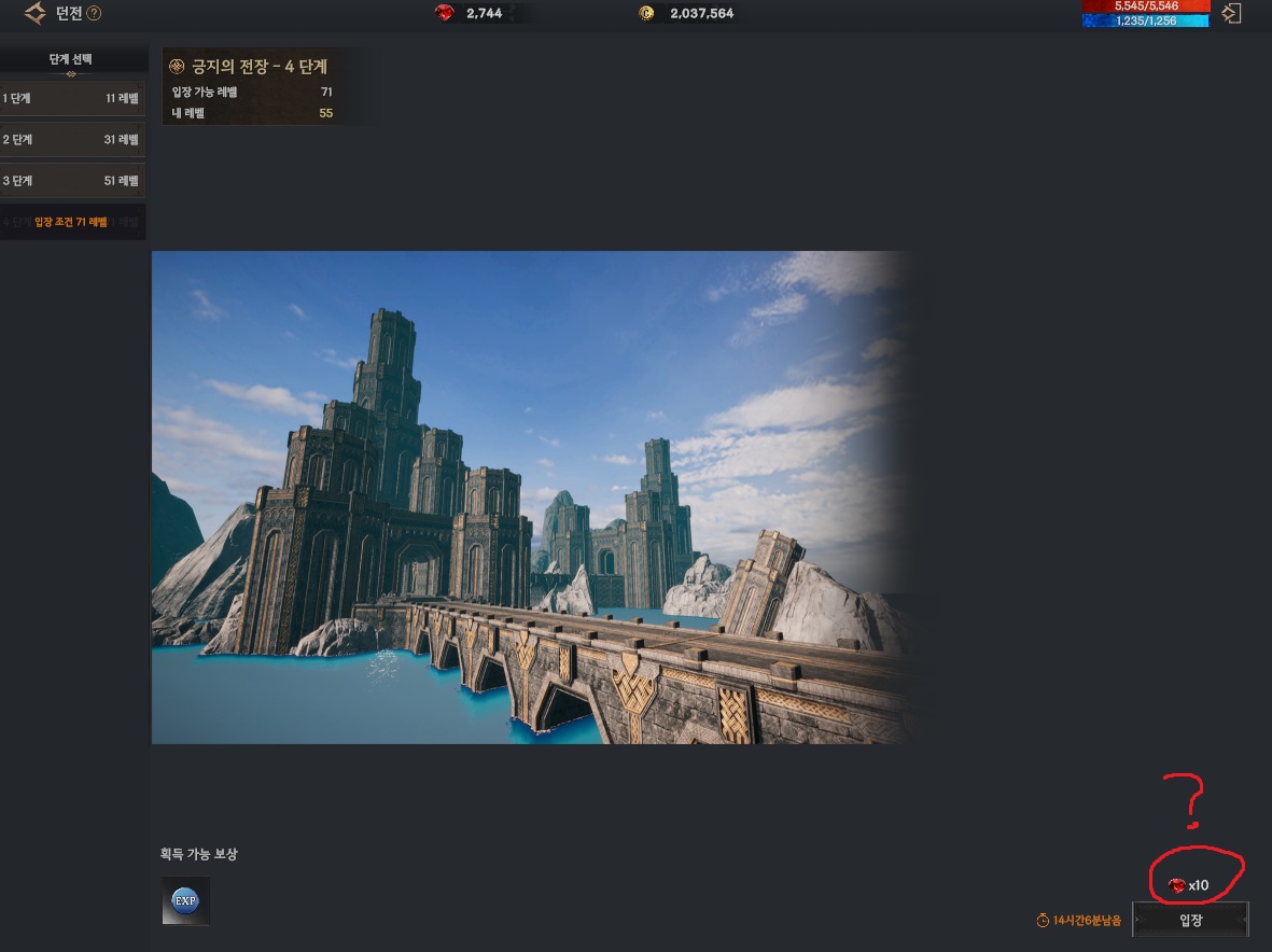 한번 다녀오고 나서도 던전 입장 오른쪽 끝부분 누르면 다음으로 넘어가짐 ㅋㅋㅋㅋㅋㅋㅋㅋㅋㅋ (빨간 체크 부분)