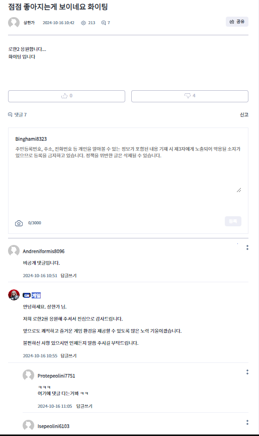 자유 게시판 영자형 우리 놀리는거지? Binghami8323 2024-10-15 18:43 379 3 공유 공유 URL 복사 페이스북 왓츠앱 카카오톡 라인 레딧 닫기 공유 1 0 댓글 3 삭제 이미지첨부 0/3000 등록