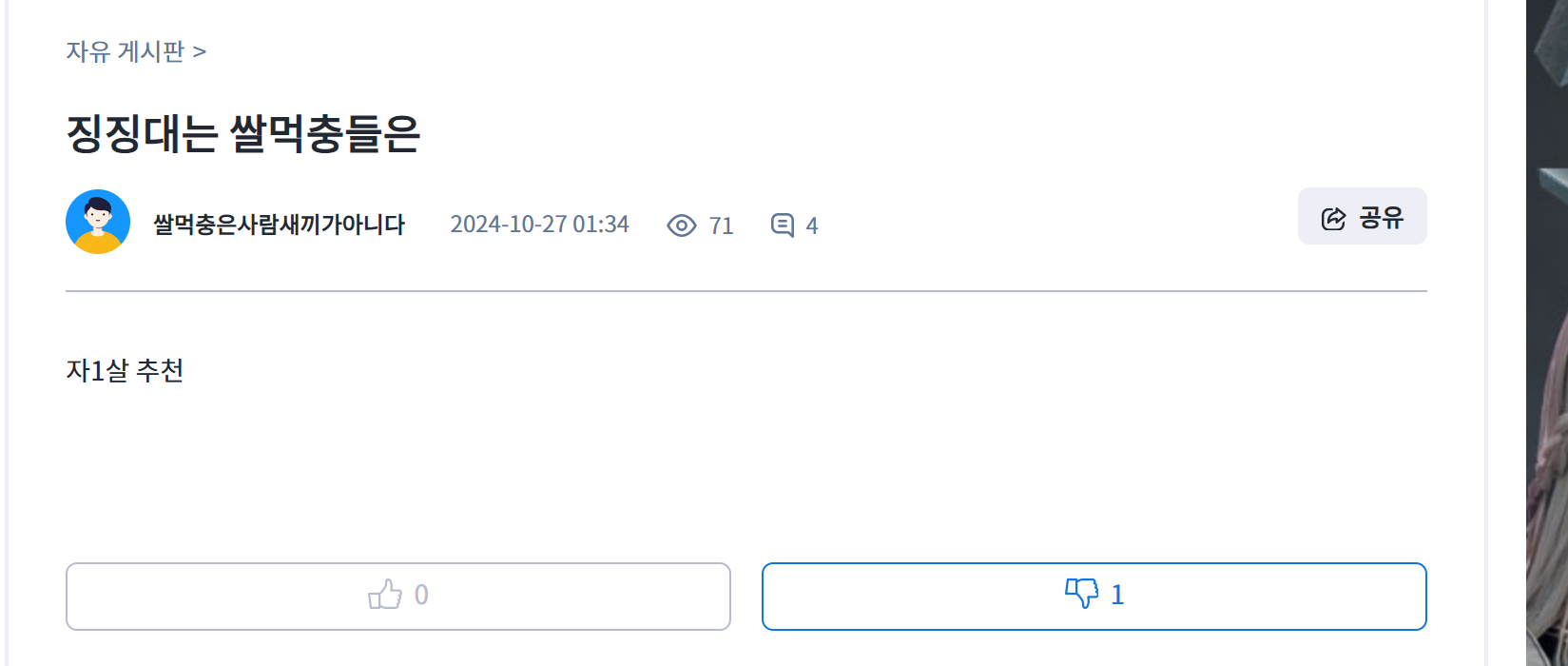 이사람 아직도 자게에 생존해 있네??? 자1살 추천해도 제재없는건가?