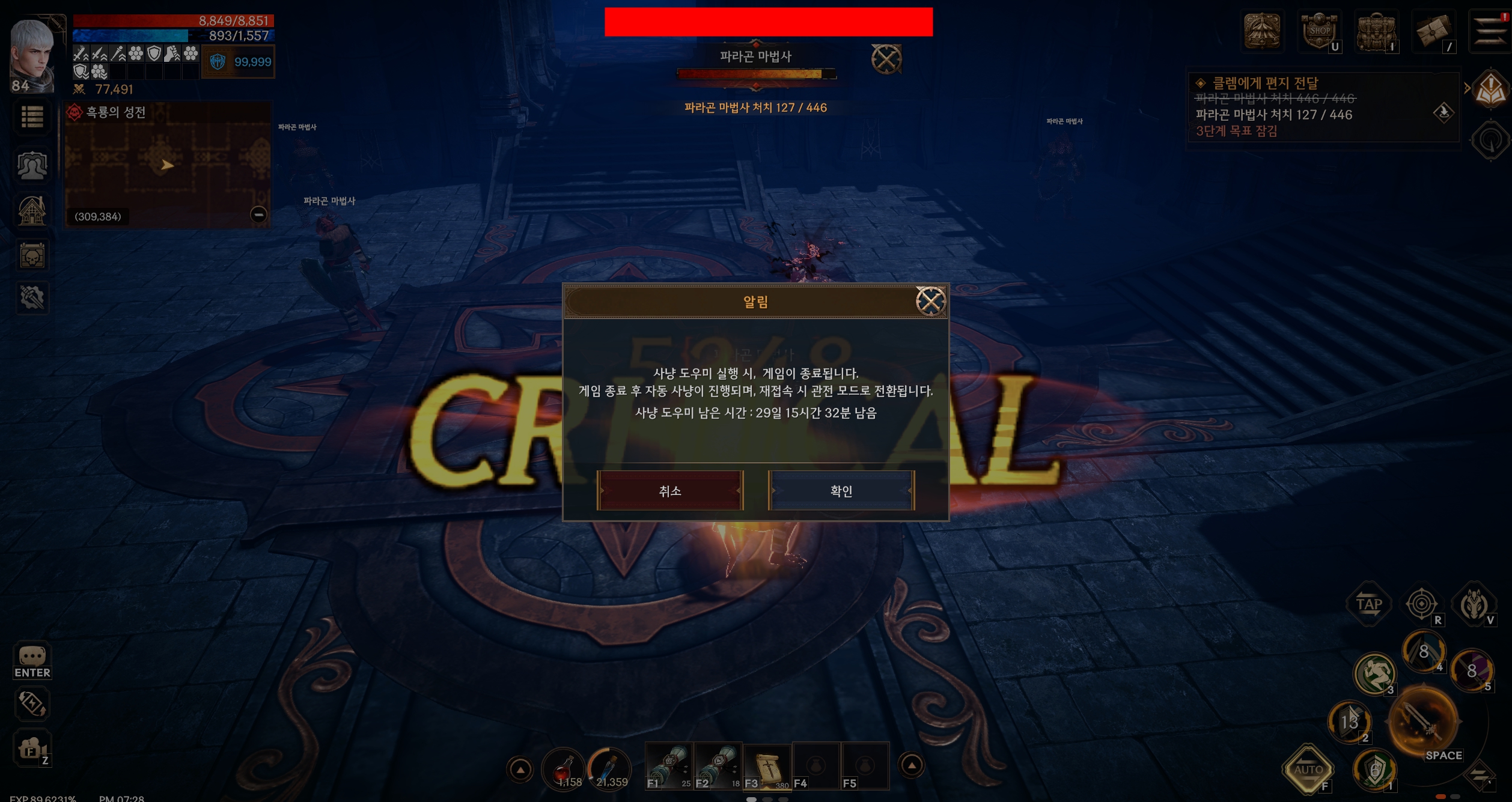 사냥도우미 시간만 정상 적용되고 아무것도 적용되지 않고 있습니다.