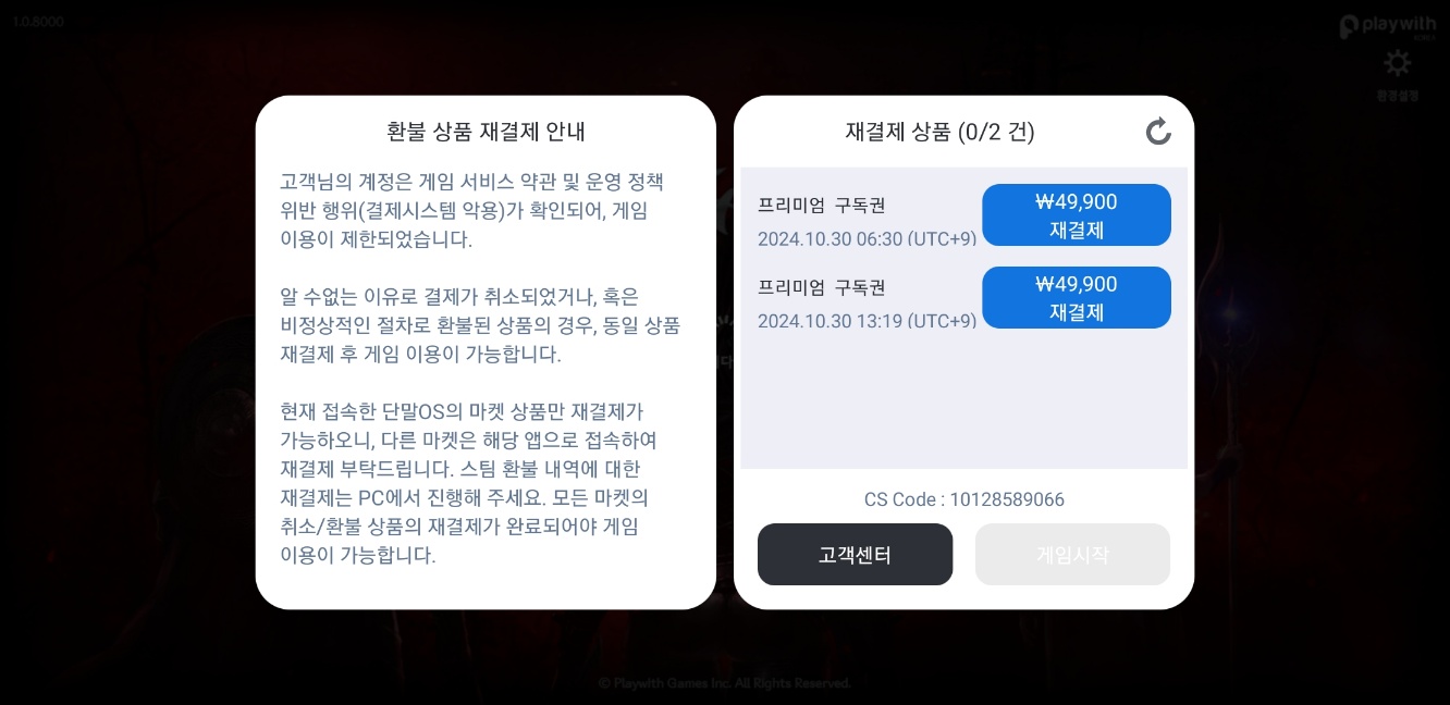 추가로 또 결제했고 이역시 구독아이템이 안들어와서 둘다 구글환불처리 했습니다