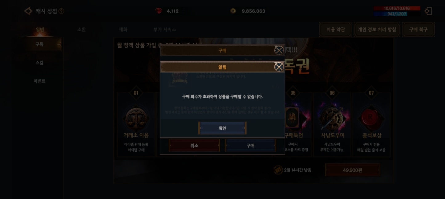구독권 구매횟수초과 뜨시는분? 해결해주면 1만원 드립니다.