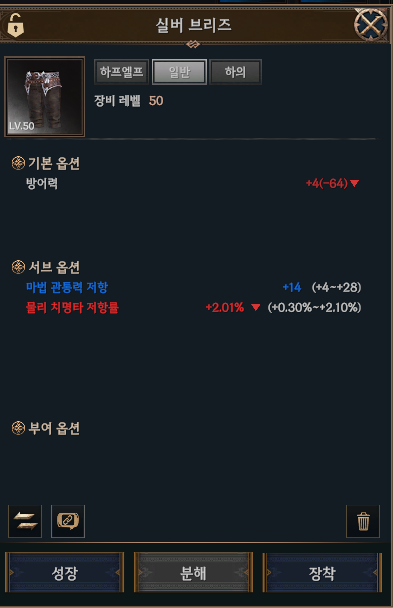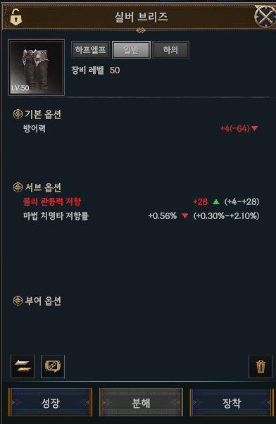 바지 - 물리 관통저항 vs 물리 치명타 저항률