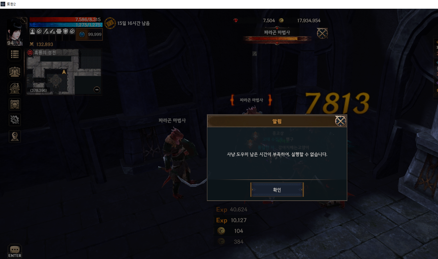 구독은 15일 남았는데 사냥도우미시간은 왜 부족한겨?
