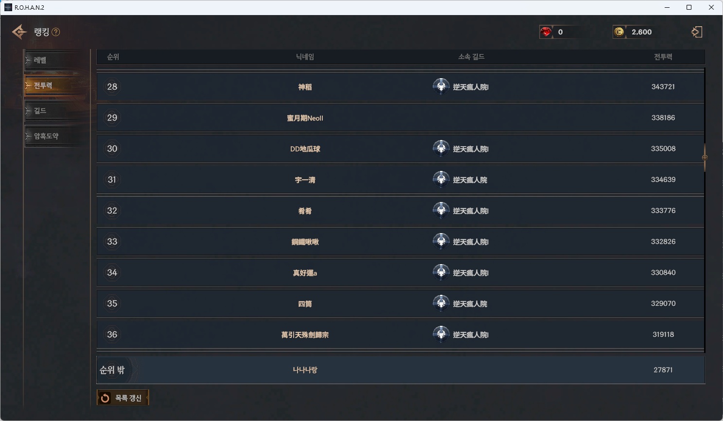 1등부터 36등까지 1명빼고 다 저길드.