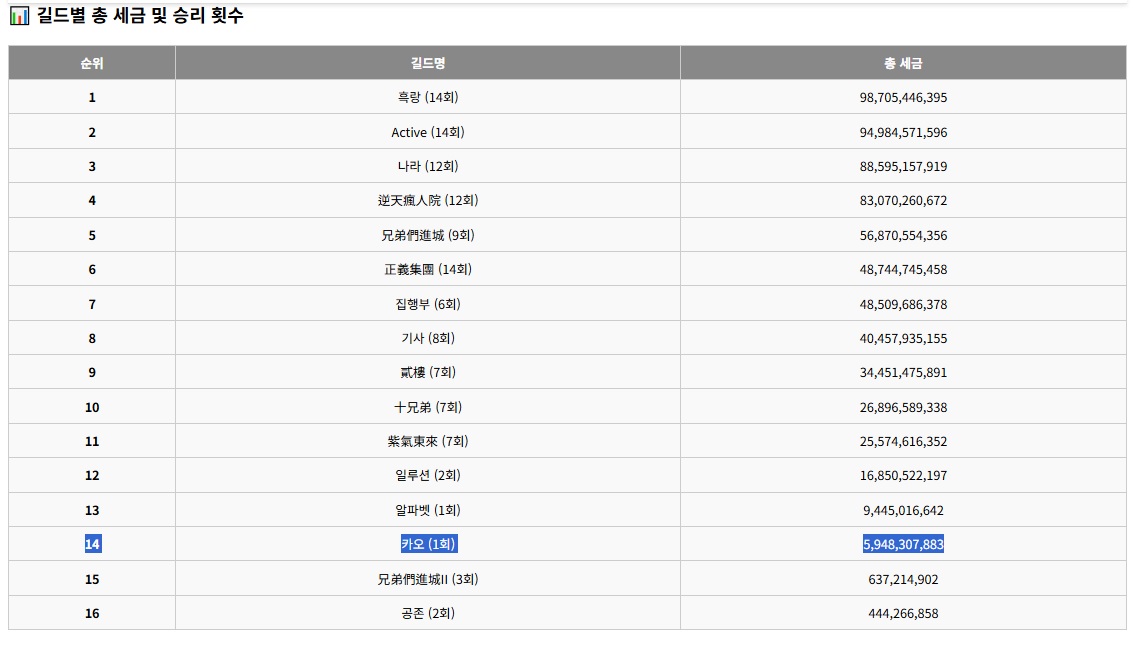 1번이겨놓고 다 이겼다고 정신승리하는 길드~~