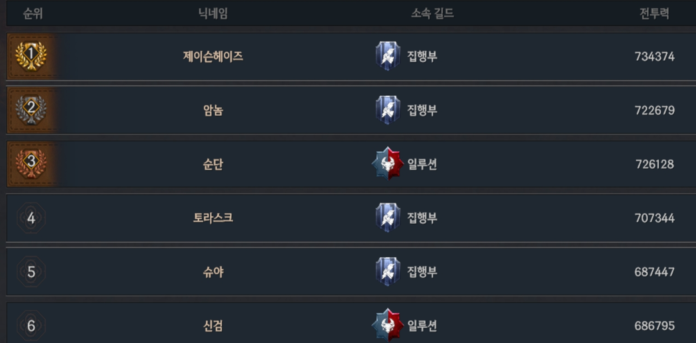 오늘 필드기준 전투력현황 (중립은 죽이지마라 일루션들아 너거끼리 싸워라 )