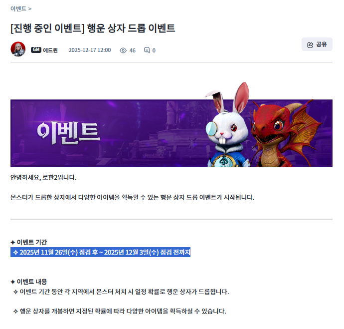 저도 로한인포사이트에 공지랑 패치노트 이벤트 복붙하고는 있지만….