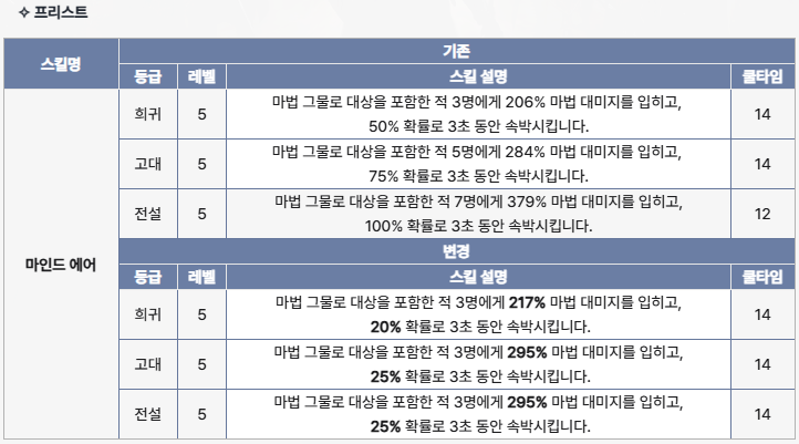 프리스트는 고대랑 전설이랑 바뀌는게 없나요?????
