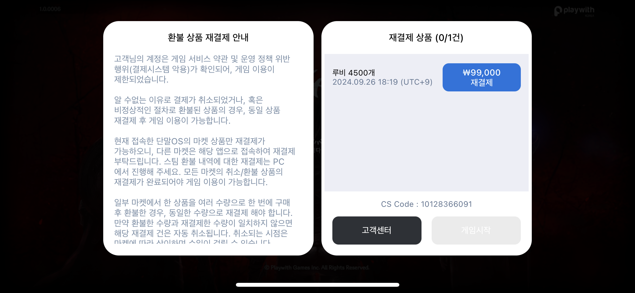 운영자야 좀 봐라 4500루비 미지급된거 2일동안 문의했다 근대 답변은 재접속만 해보라하고 답없더라? 그래서 못받은거 환불때렸는데 왜 재결제하고 들어가야되냐?
