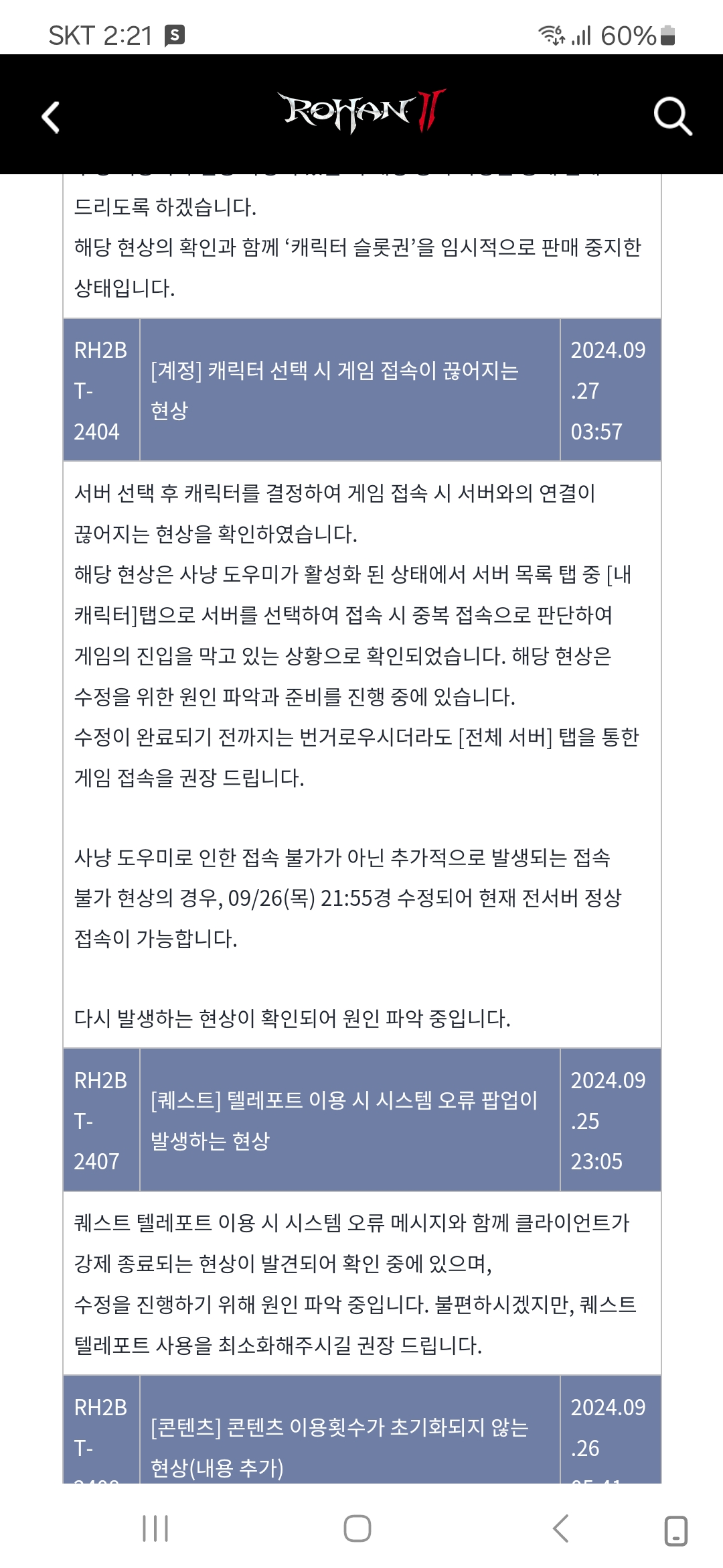 다시 발생하는 현상이 확인되어 원인 파악 중 입니다