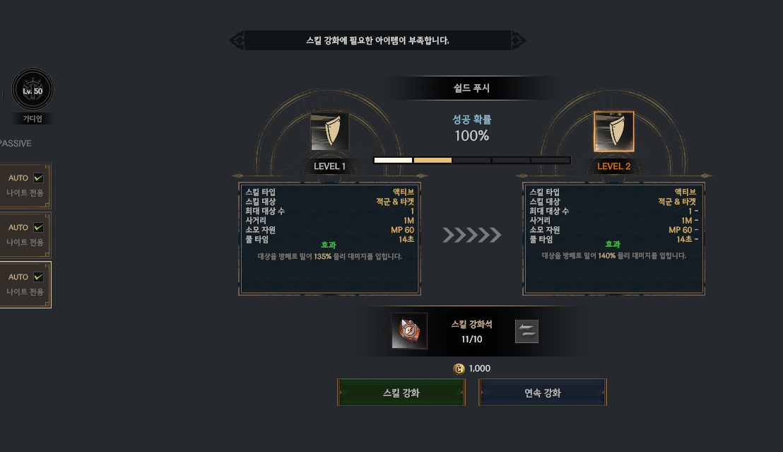 스킬강화재료 10개이상있는데 왜강화재료가 부족하다고 뜨나요?