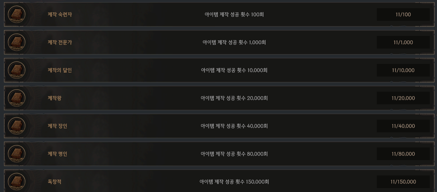 강화석 1개 제작시에도 1회 증가, 강화석 100개 한번에 제작시에도 1회 증가,
