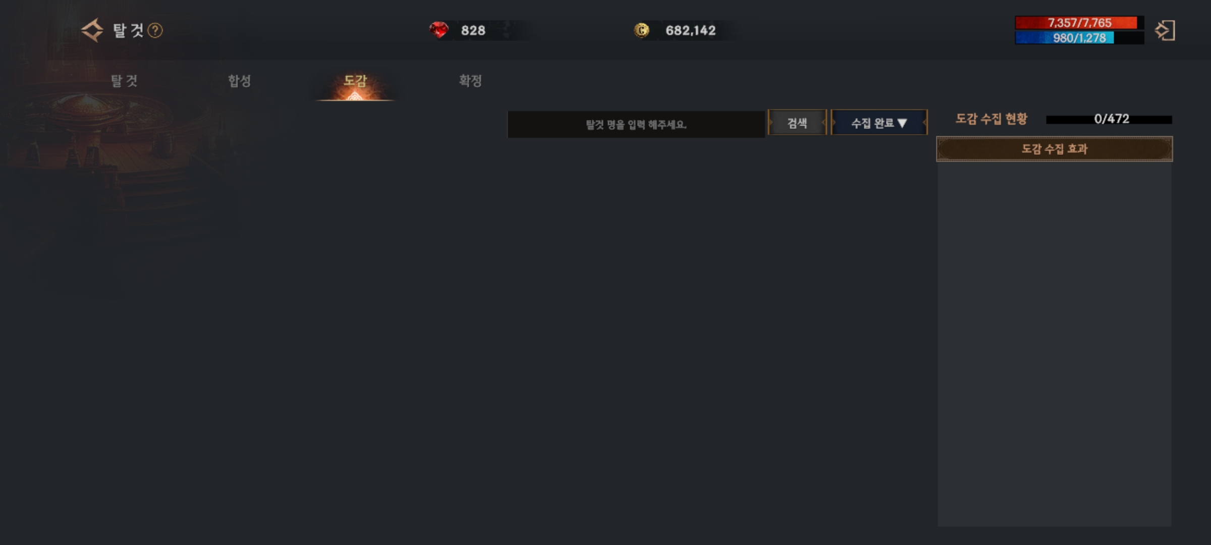 탈것 도감 수집 효과가 아무것도 없습니다