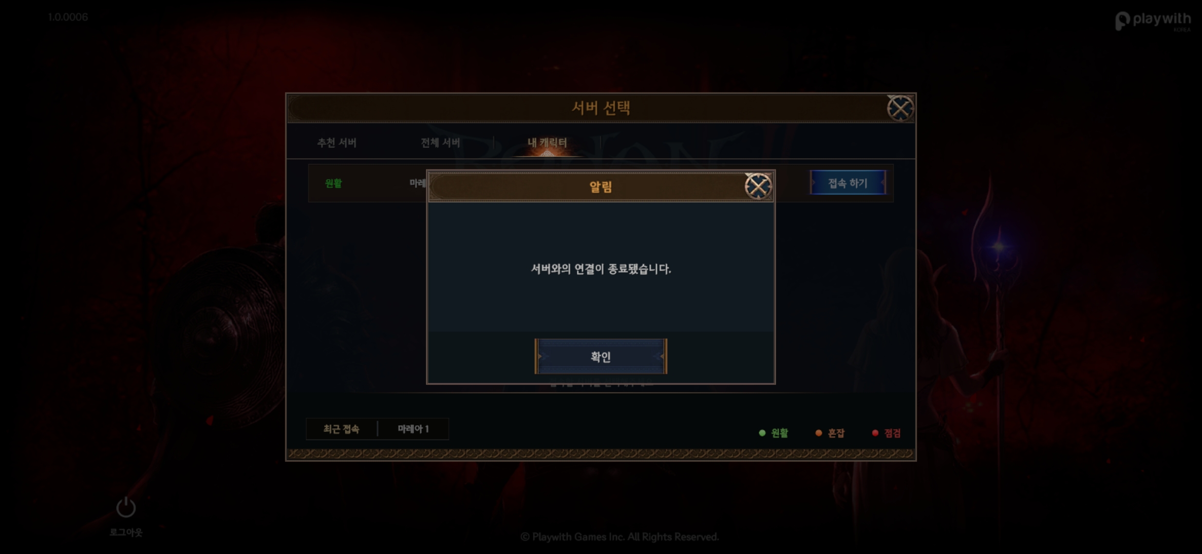 서버와의 접속이 종료됐습니다. 라고 나오면서 접속이 안됩니다. ㅠㅠㅠ