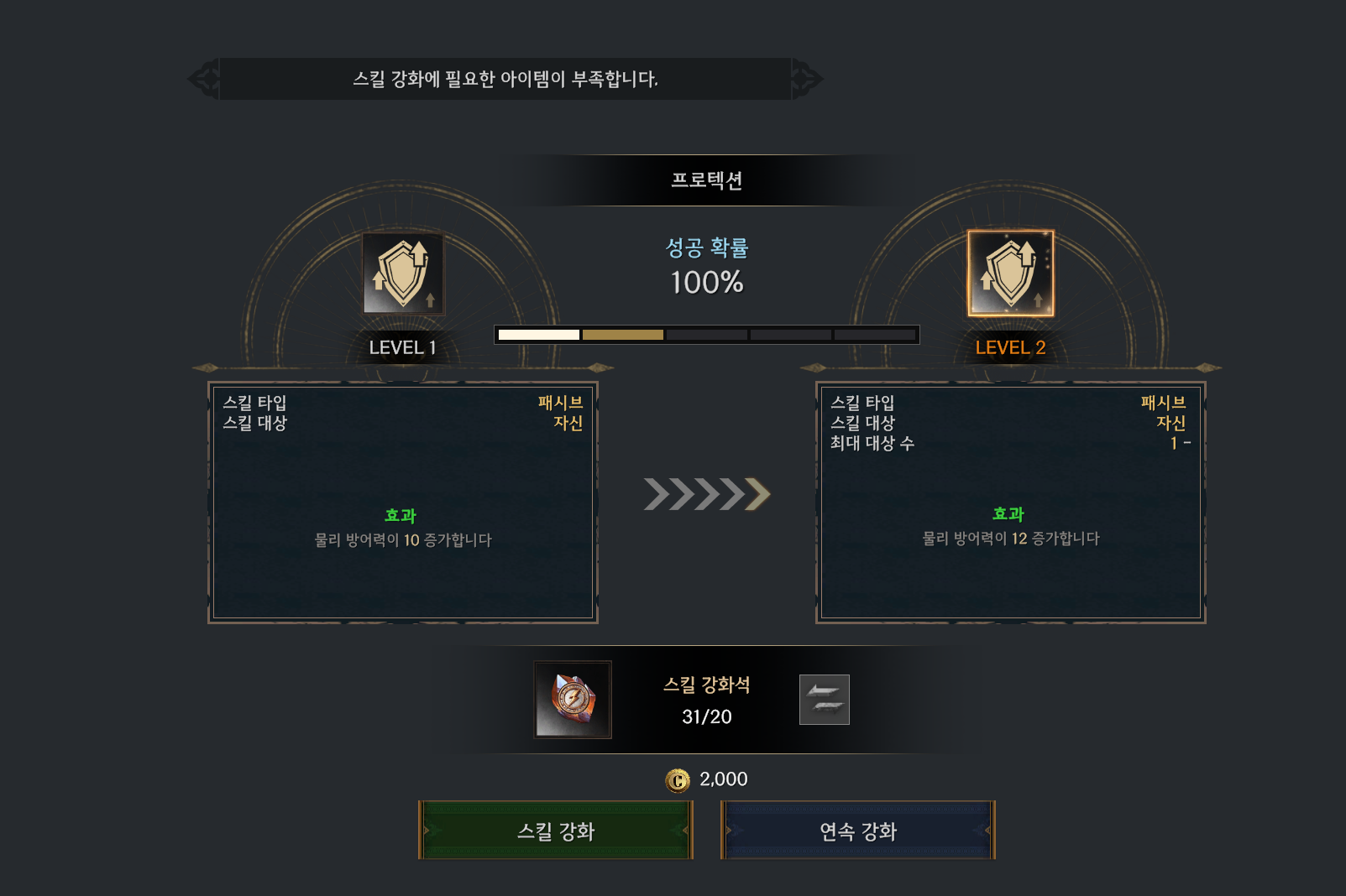 스킬강화석 귀속 19개 / 판매가능 12개 있어서 총 31개인데 ㅋㅋㅋㅋㅋㅋ아이템부족이라고뜨네;;