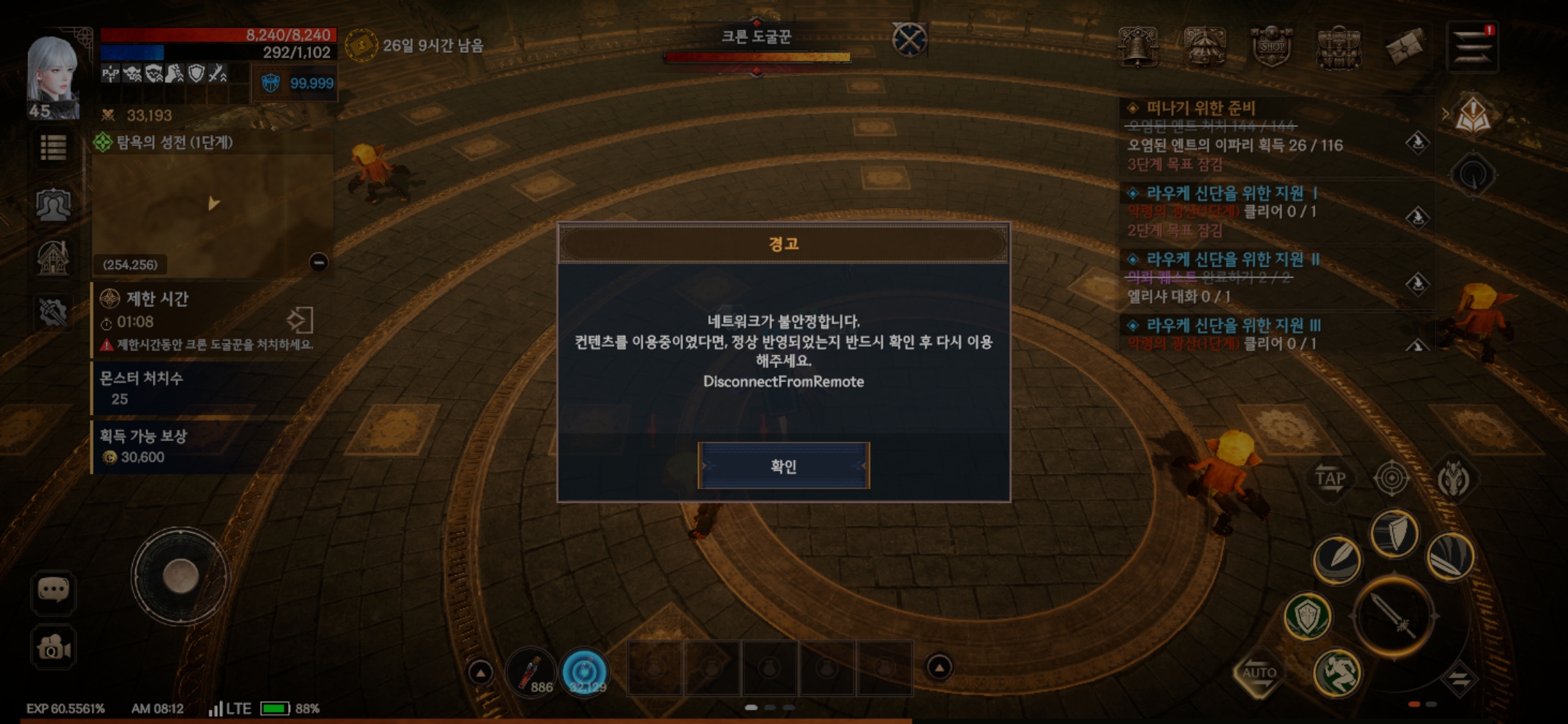 던전미션수행중팅김현상이자주발생 다시 접속하면던전을 이용할수없어 보사믈받을수없습니다