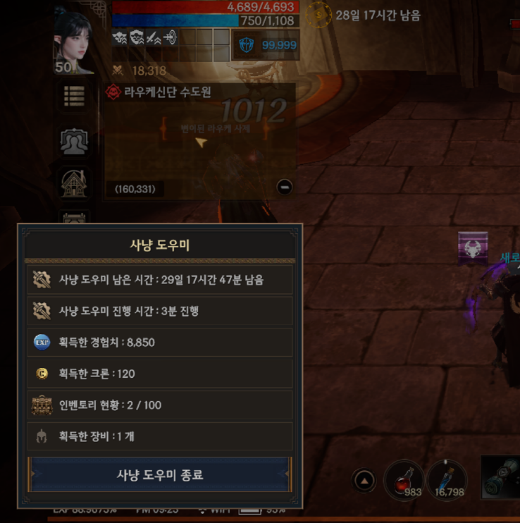 50렙 짜리가 수도원에서 사냥도우미를 썻는데 경험치가 3분에 8천은 말이 안됩니다.
