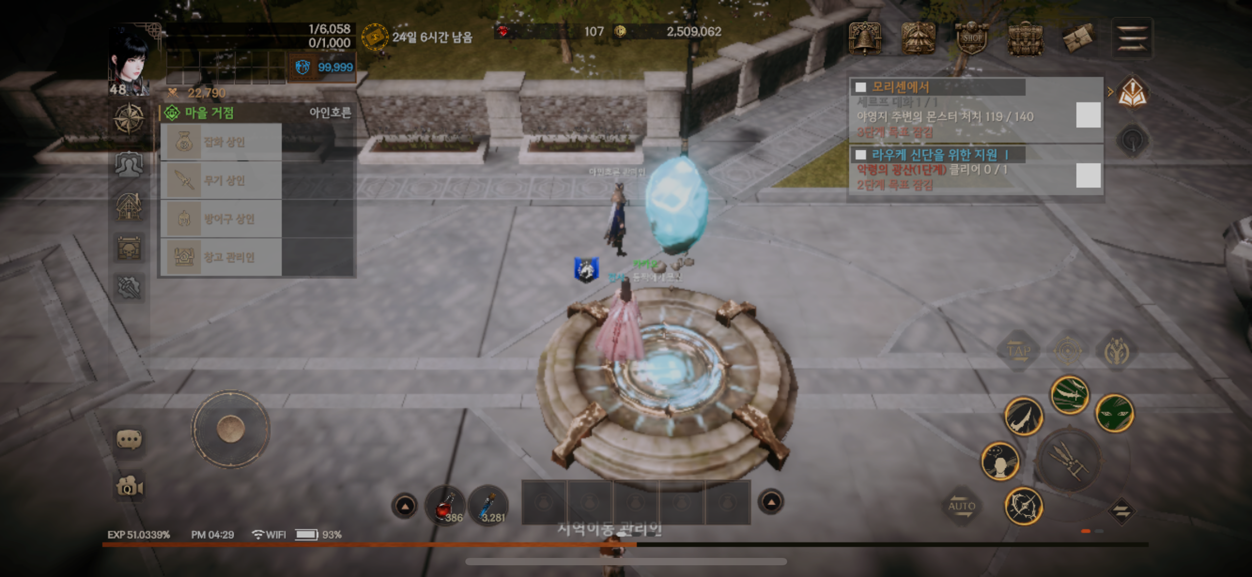 마을 귀환 후 물약사러 갔는데 화면 멈춰있는데…1시간 가까이 게임을 못하고 있습니다…