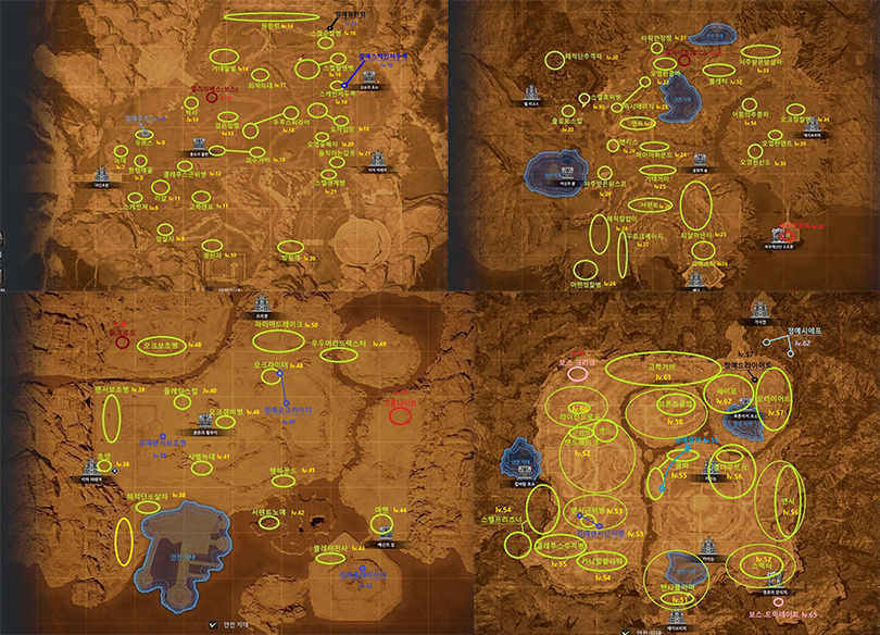 몬스터 분포도와 레벨 지도 갈무리