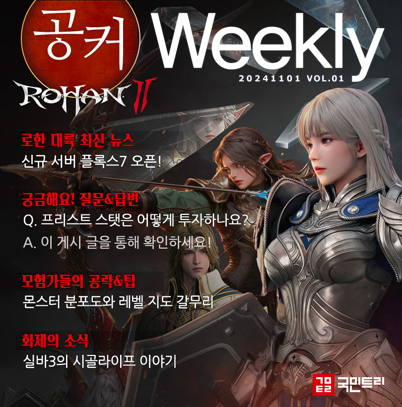 안녕하세요, '로한2' 공커 위클리 첫 번째 시간입니다. 공커 위클리는 매주 로한2의 최신 소식을 갈무리하는 콘텐츠입니다. 패치 노트와 이벤트는 물론, 유저 게시판의 이슈 글도 소개할 계획이죠. 앞으로 많은 응원 부탁드립니다.
