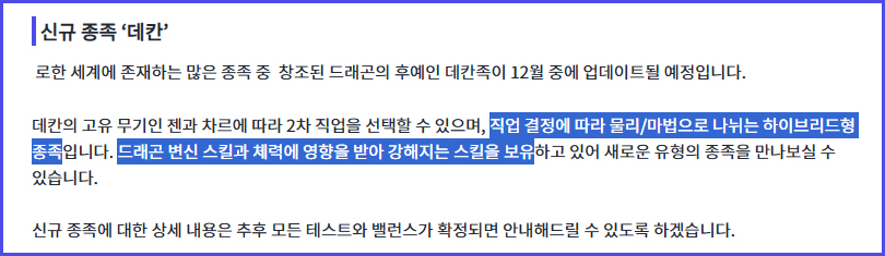 ▲ 데칸은 변신 종족이며 12월 중 업데이트할 계획이다 (소스 출처: 공식 커뮤니티)