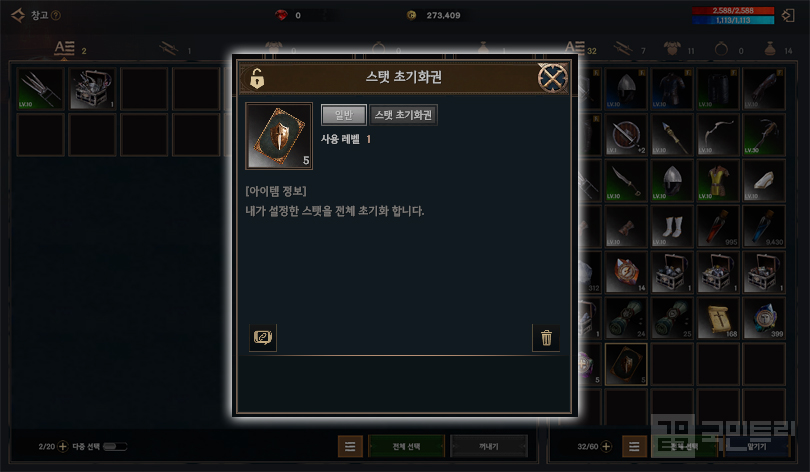 ▲ 스탯 초기화권은 창고에 넣을 수 없었다 (사진: 국민트리 제작)