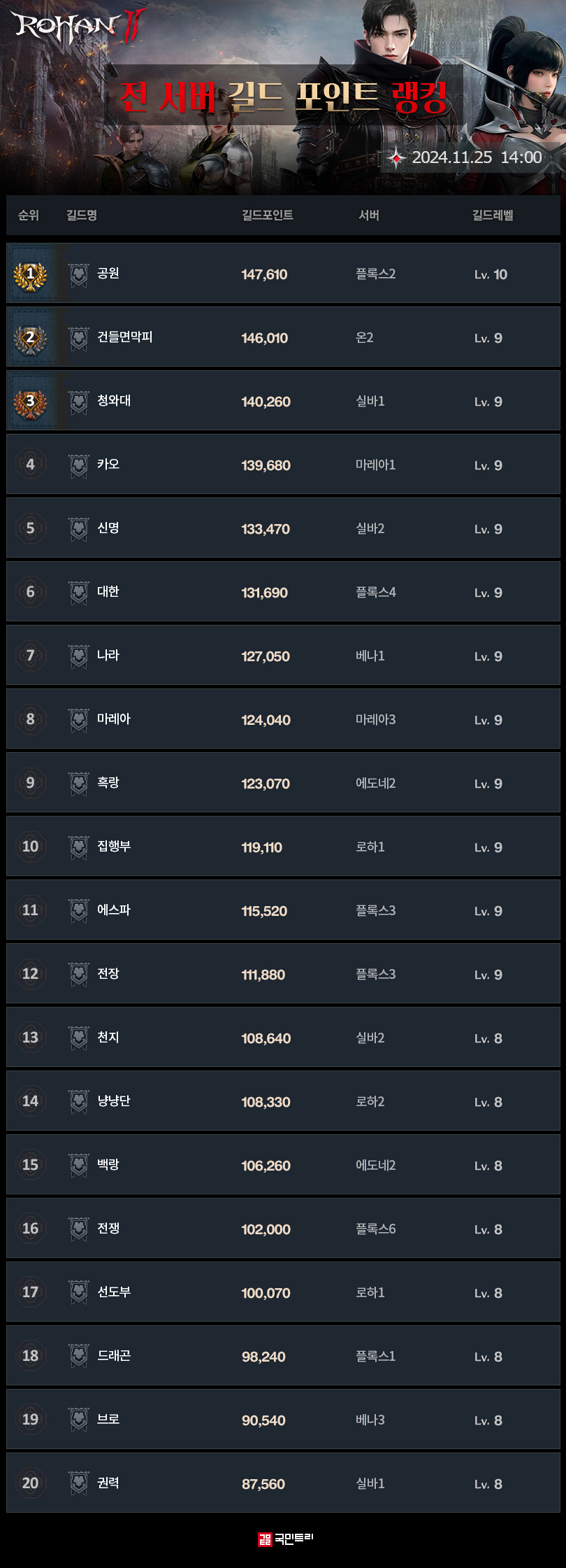 전 서버 길드 포인트 랭킹