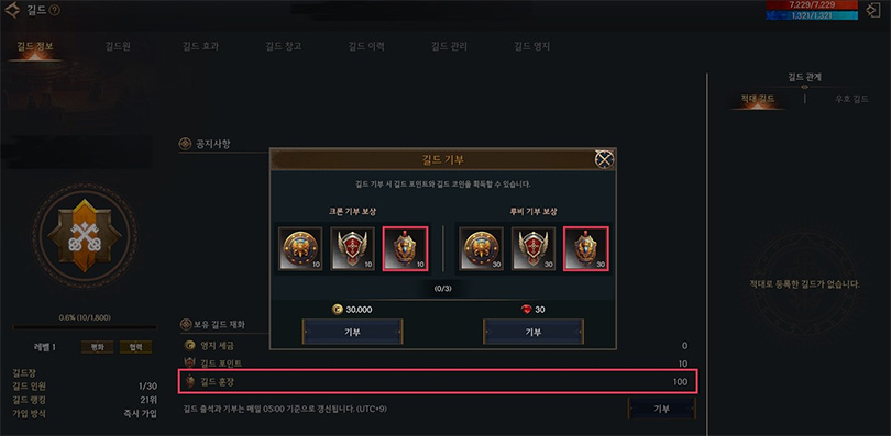 이번 업데이트에서 신규 요소인 ‘길드 훈장’이 등장했습니다. 해당 아이템은 길드 기부를 통해 얻을 수 있죠. 길드 훈장은 길드에 귀속되며, 추후 추가될 길드 상점에서 사용 가능합니다. 길드 상점에서는 길드 소환 던전 입장에 필요한 혼돈의 균열 아이템을 판매할 예정이라는군요.