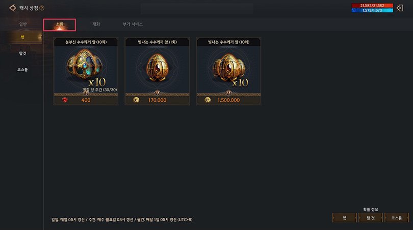 ▲ 확률이 더 높은 눈부신 소환 패키지 추가 (사진출처: 로한2 공식 커뮤니티)