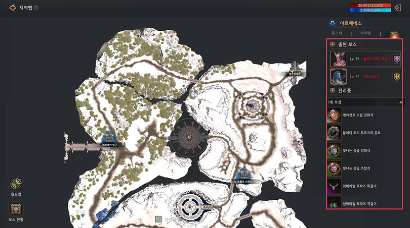 신규 지역 ‘아르메네스’ 정예&보스 몬스터 위치