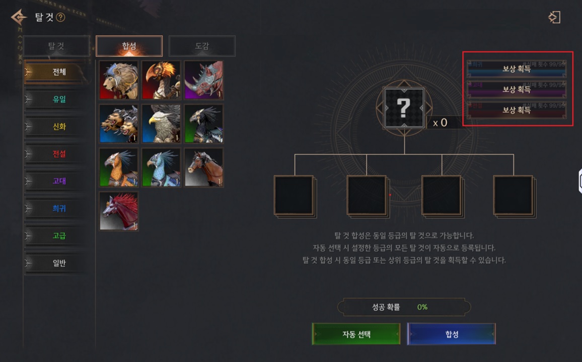 | 펫/탈 것을 다수의 고급 등급 합성 중 희귀 등급 획득 시 결과를 확인하지 못하는 현상이 확인되였으며, 10/3(목) 임시점검을 통해 수정을 진행하였습니다. 다만 환경과 상황에 따라 재발생이 확인되어 발생 상황에 대한 추가적인 확인과 수정 작업을 진행 했습니다. | ||
