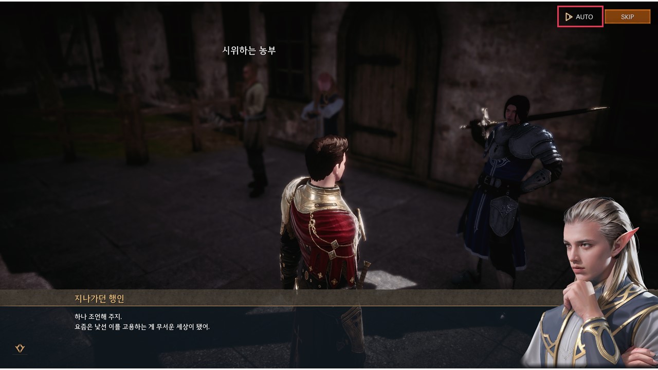 - 대화 진행 화면 우측 상단의 ▷AUTO 버튼으로 자동 넘김 기능을 켜고 끌 수 있습니다.