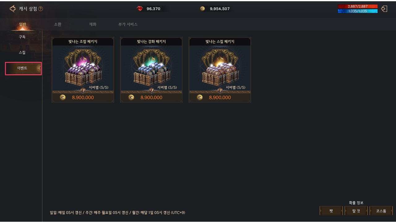 이벤트 상자는 캐시 상점 - 일반 - 이벤트 탭에서 확인할 수 있습니다.
