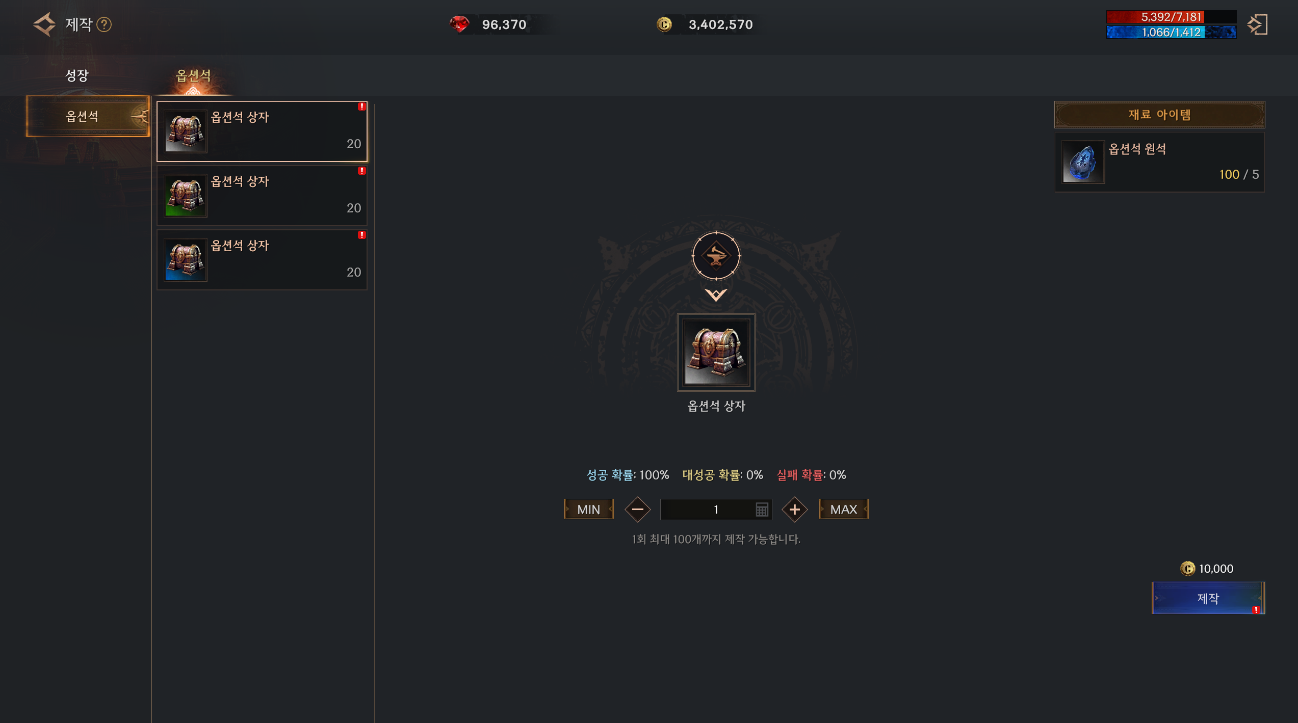 등급별 원석으로 해당 등급의 상자를 제작할 수 있습니다.