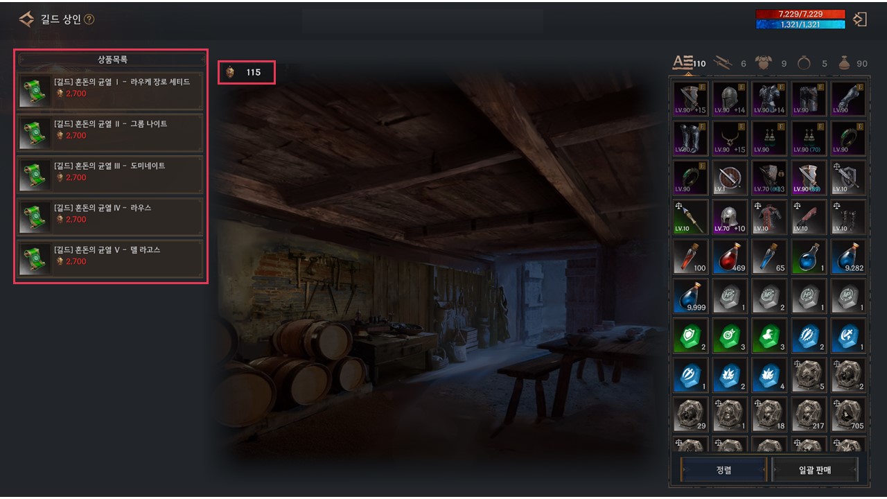 - 상품 목록 우측에 길드의 길드 훈장 보유량이 표시됩니다.