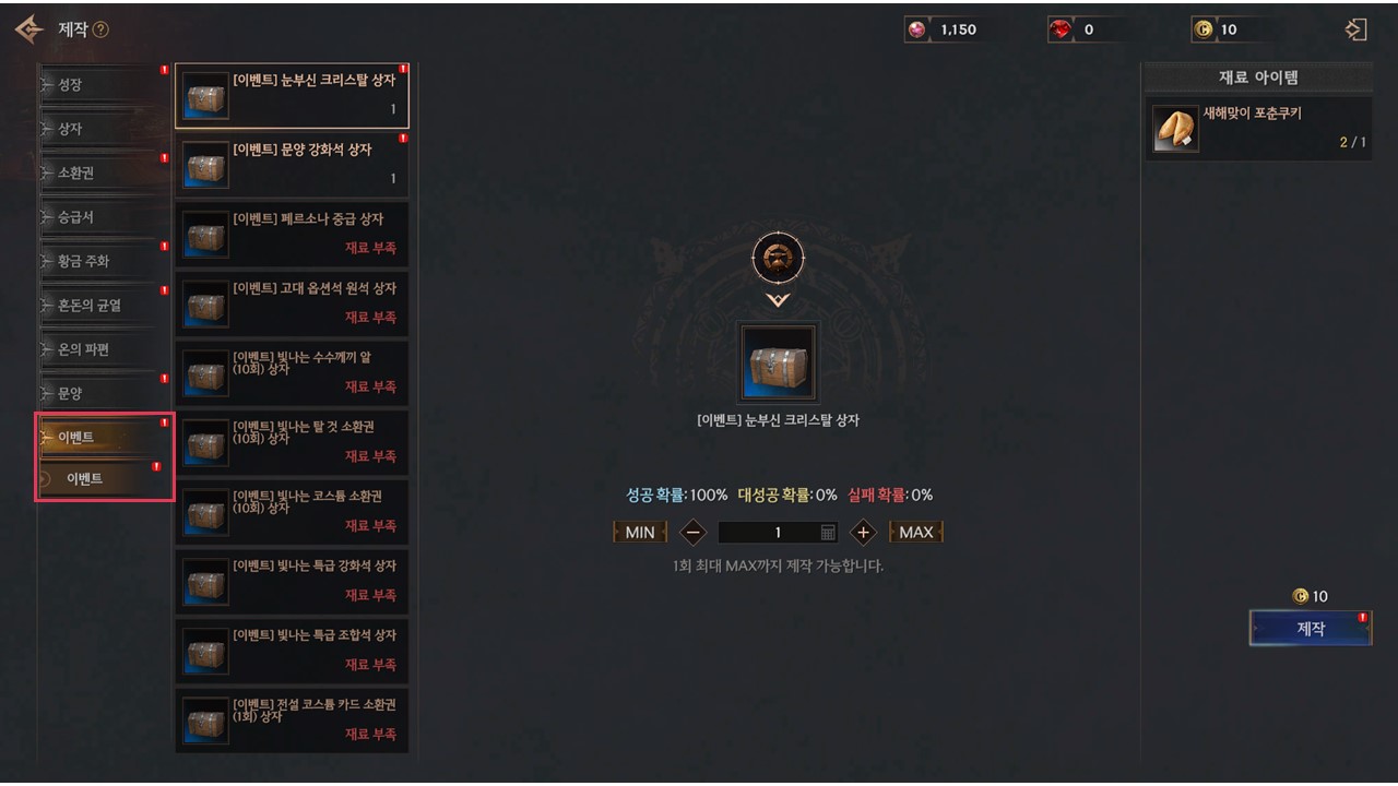 ❈ 제작 아이템은 모두 거래 불가 아이템으로 획득됩니다.