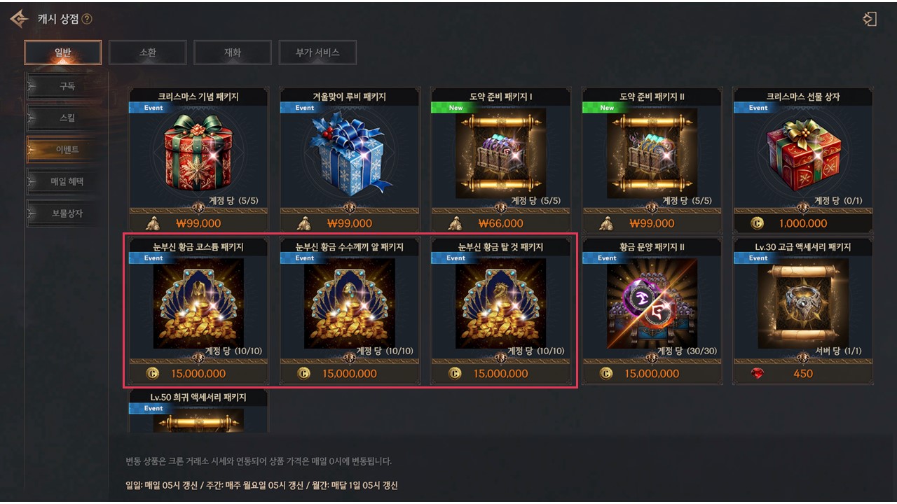 ✦ 눈부신 황금 패키지 이벤트가 시작됩니다.