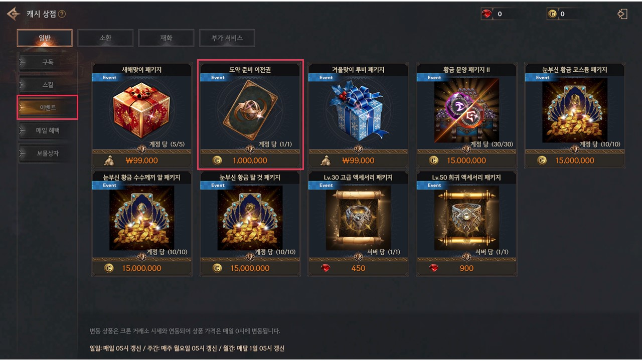 ▸ 서버 이전권은 서버 이전 기간 중에만 구매가 가능하며, 이외 기간에는 구매 기능이 비활성화됩니다.
