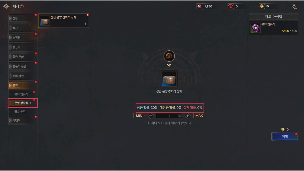 ✦ 일반 문양 강화석을 재료로 확률적으로 상급 문양 강화석을 제작하는 제작식이 추가됩니다.