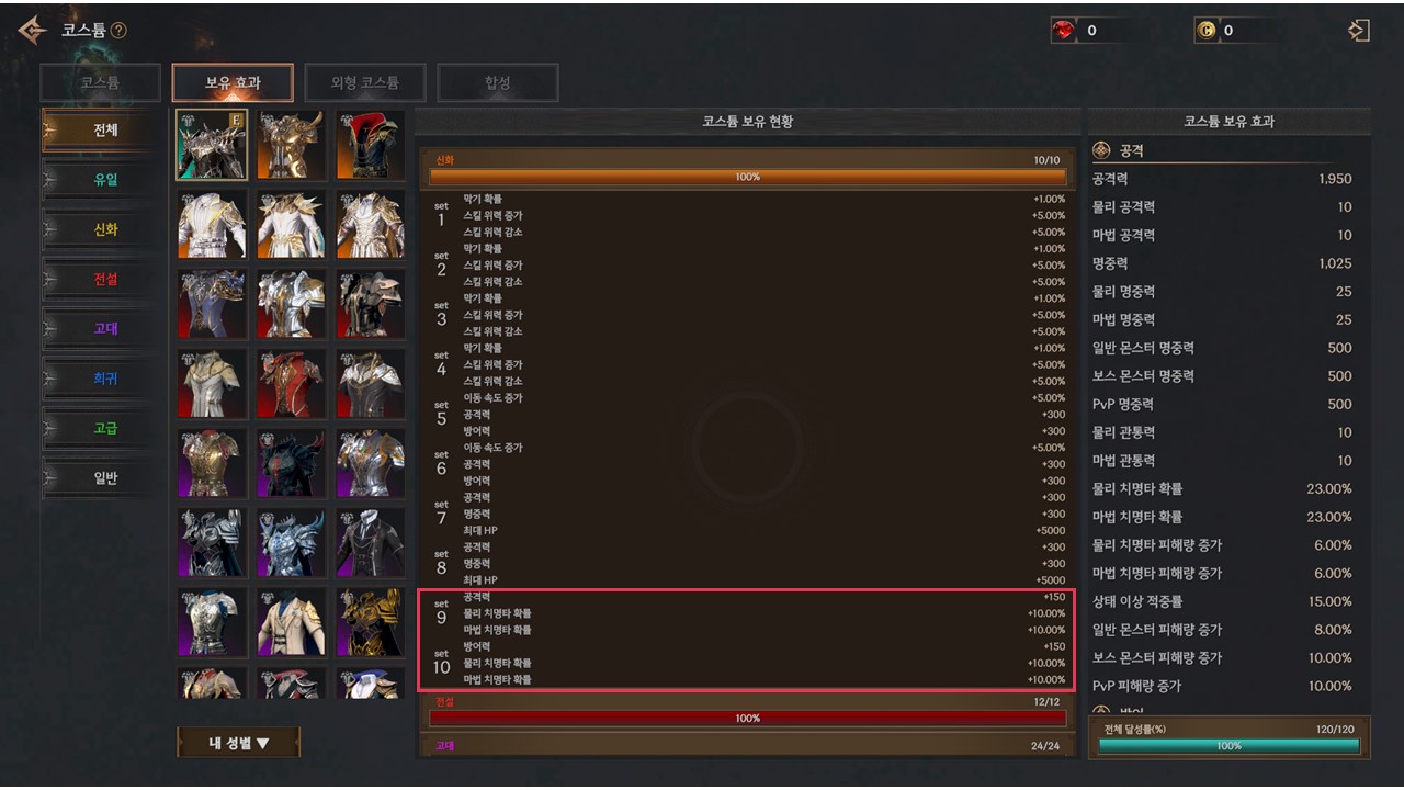 ▸ 신화 등급 코스튬 9, 10 세트 보유 효과가 추가됩니다.