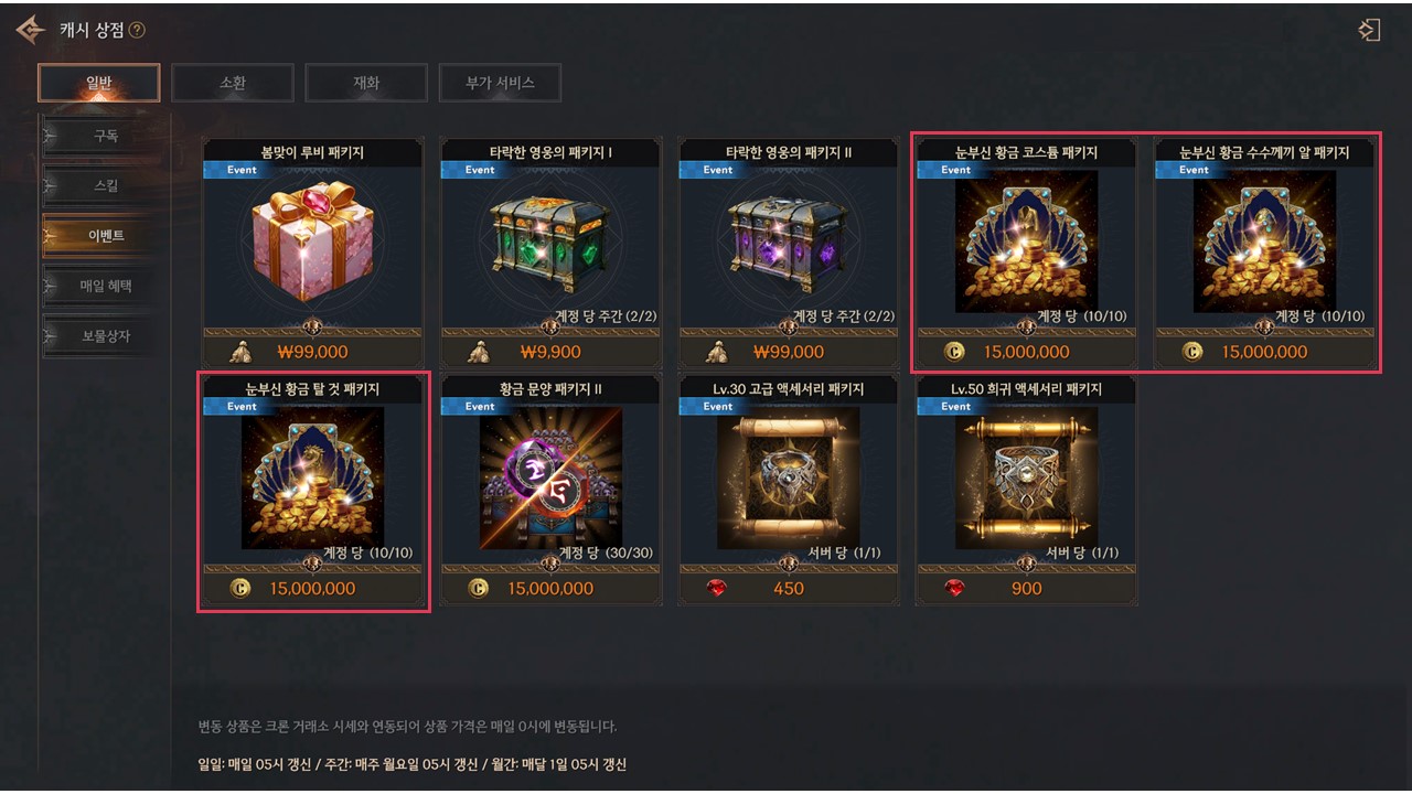 ✦ 눈부신 황금 패키지 이벤트가 시작됩니다.