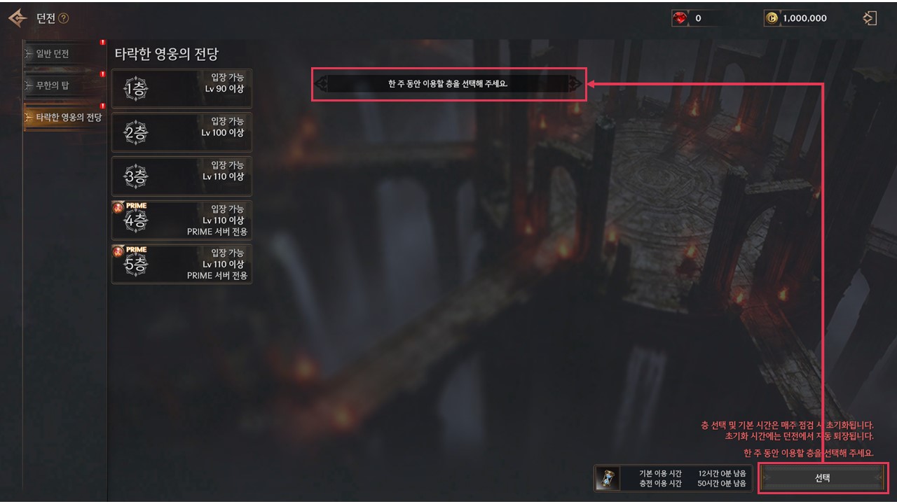 ✧ 선택 층수와 기본 이용 시간이 12시간으로 초기화되는 시점이 매주 정기점검 후로 변경됩니다.