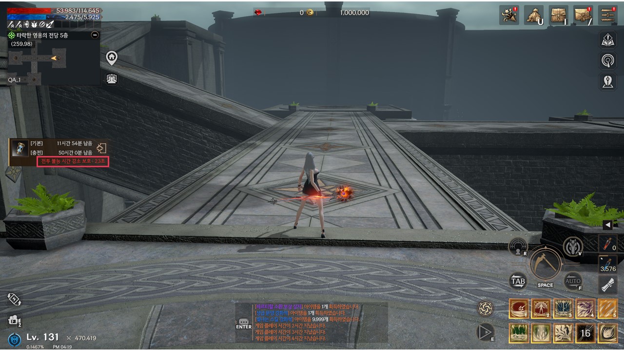 ✦ 타락한 영웅의 전당에서 사망 후 다시 사망 페널티 적용으로부터 보호되는 쿨타임 30초가 메인 화면에 표시됩니다.