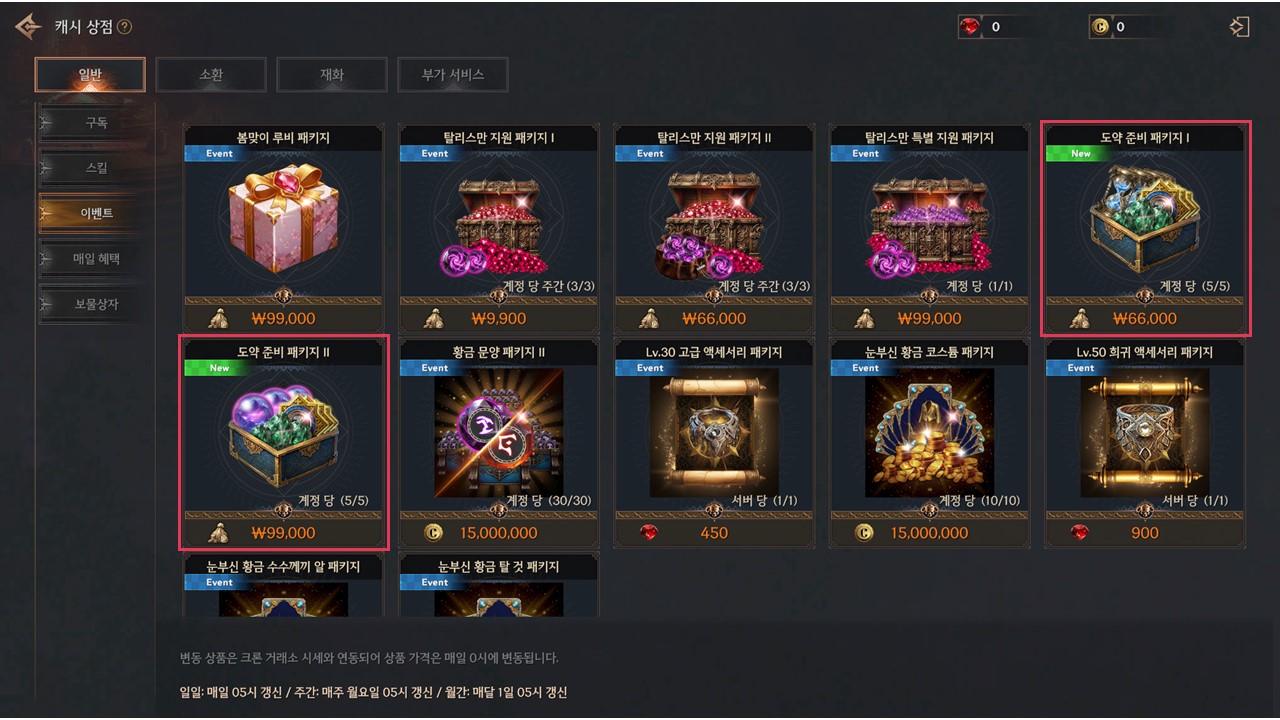 ✦ 도약 준비 패키지 1, 2의 구성이 변경되어 신규 판매됩니다.