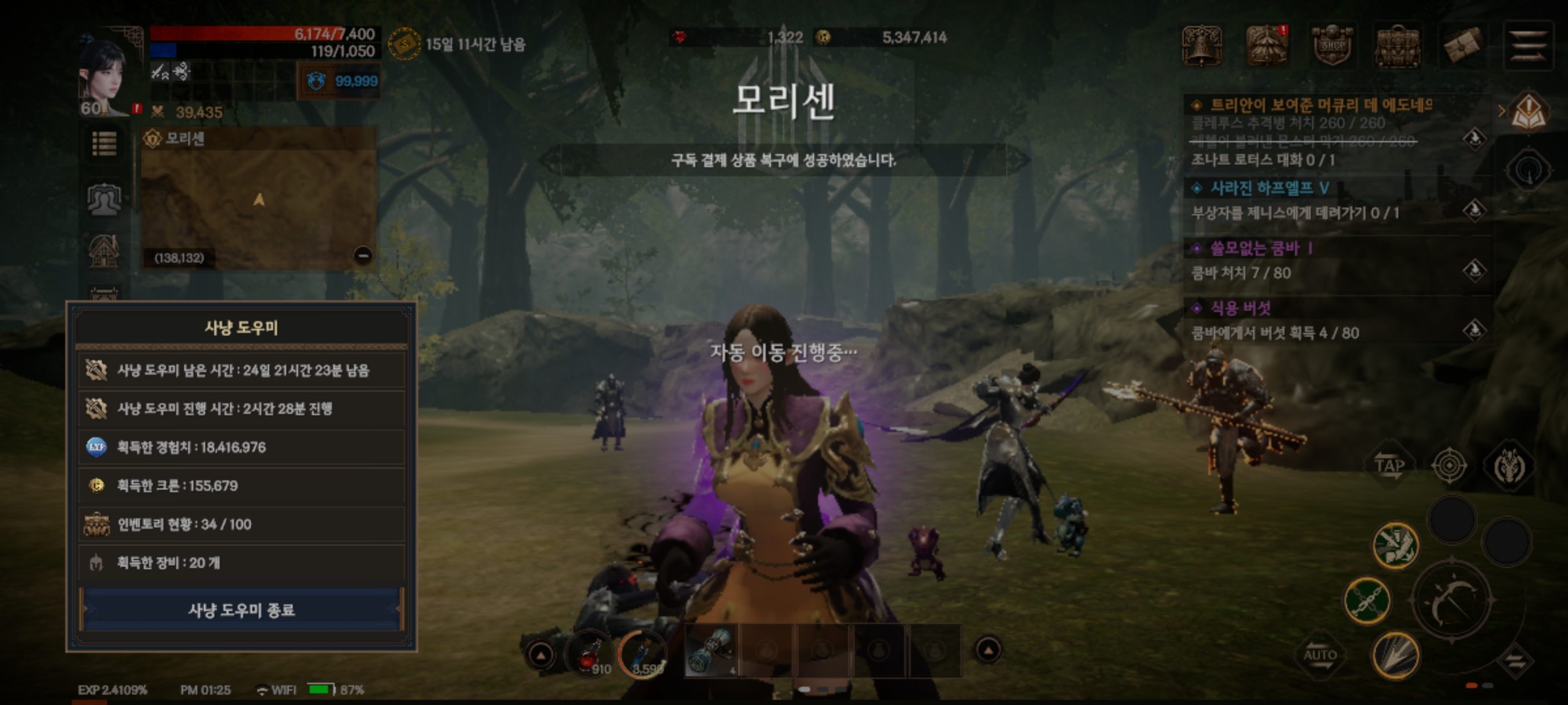 사냥도움이 실행시 MP물약소모를 않하는 현상이 계속되고 있습니다. 해결해주세요.