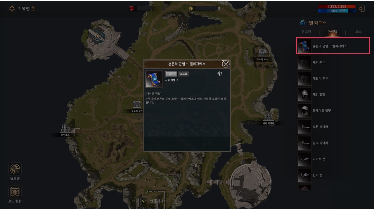 - [개인]/[파티] 혼돈의 균열 아이템 아이콘/설명 비교