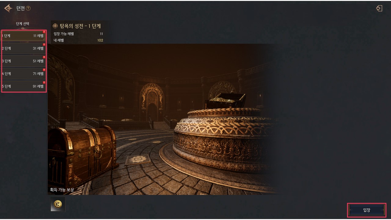 각 단계는 난이도에 따라 입장 제한 레벨로 구분되며, 단계에 따라 보상이 차등 적용됩니다.
