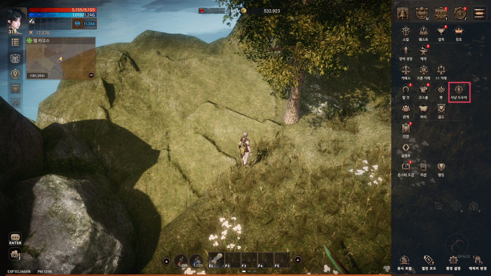 오른쪽 상단 메뉴의 사냥 도우미 아이콘을 누르면 사냥 도우미 설정 창이 열립니다.
